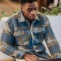 Young man in a casual setting intensely focused on his laptop, indoors.